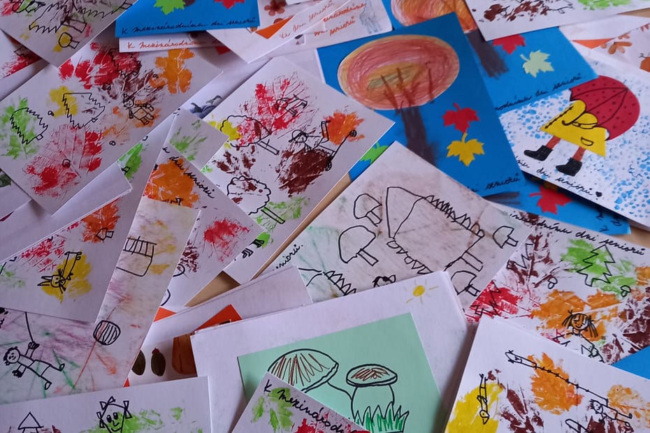 K sobotnímu svátku všech seniorů vyrobily děti ze zaměstnanecké mateřské školy v Kukučínově ulici několik přáníček.